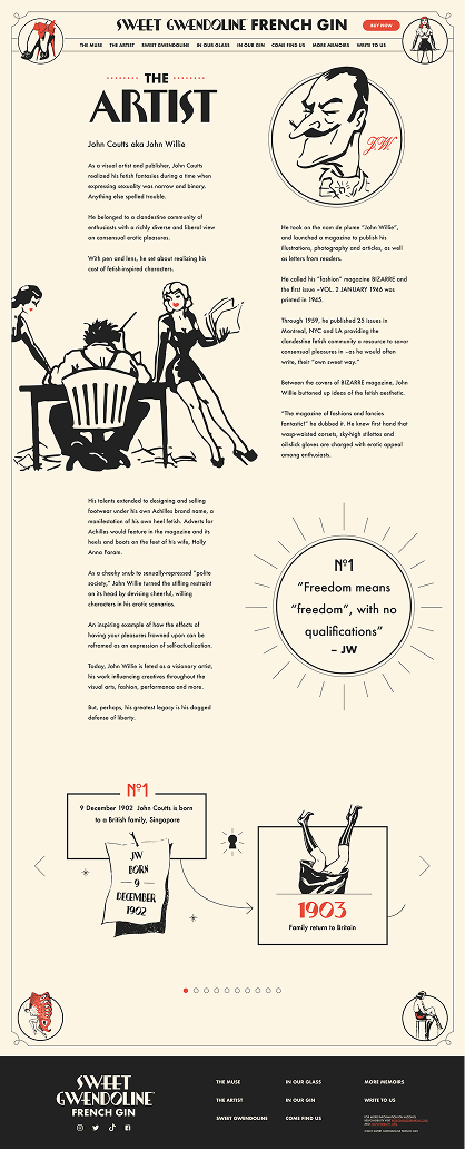 Working closely with Larry McGearty and his team, I helped shape the visual world of Sweet Gwendoline French Gin — a brand that blends elegance, mischief, and a touch of nostalgia. From the structural design of the bottle, the custom typeface, to the tactile, story-driven packaging, every element was crafted to capture the spirit of its namesake muse. The result is a distinctive, artful brand experience that feels equal parts bold, seductive, and timeless.